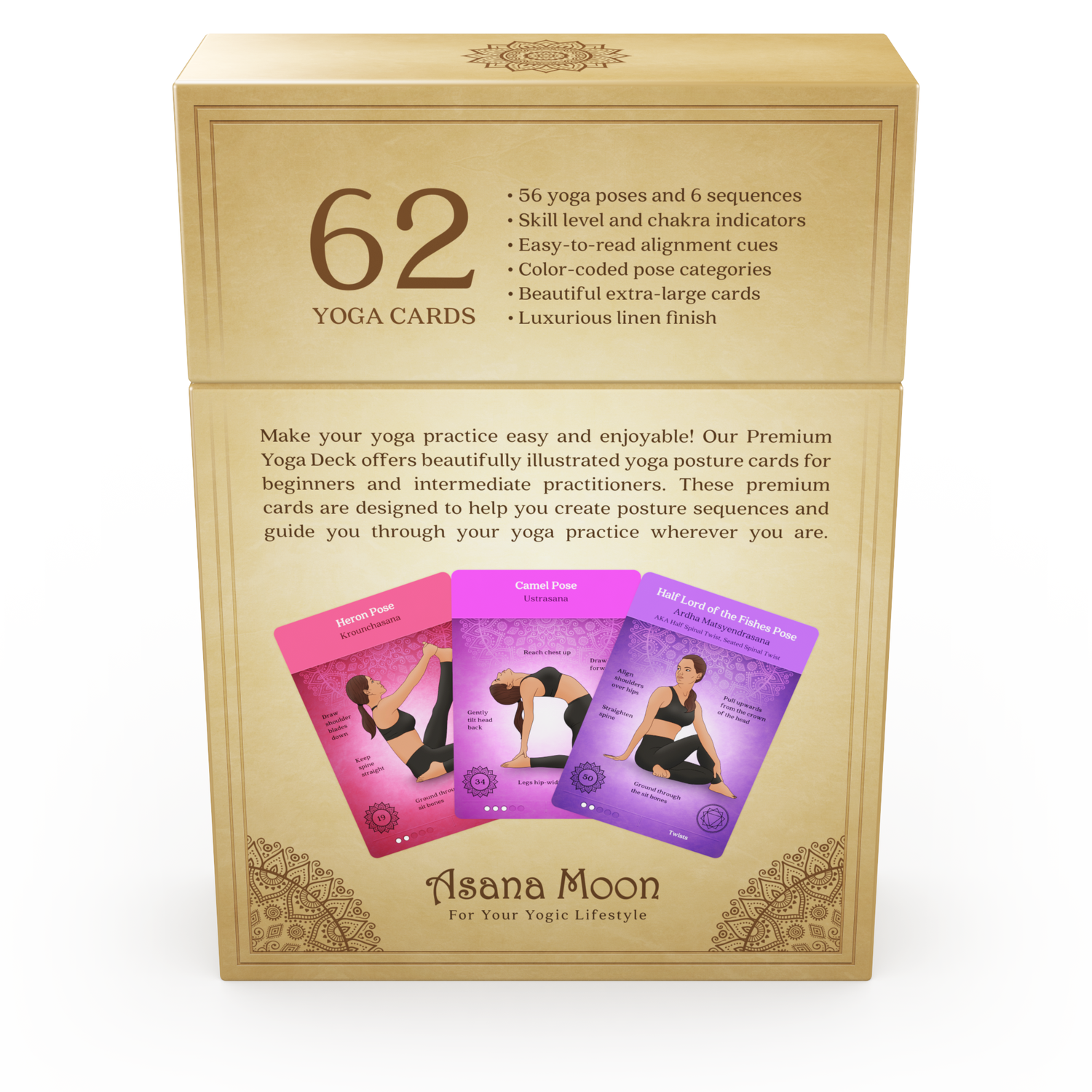 Each card includes clear illustration and alignment cues to help you practice correctly. Additionally there are condensed general guidelines about practicing yoga.